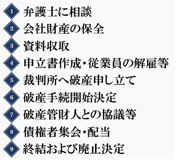 事業破産では、基本的に以下のような流れで進んでいきます。